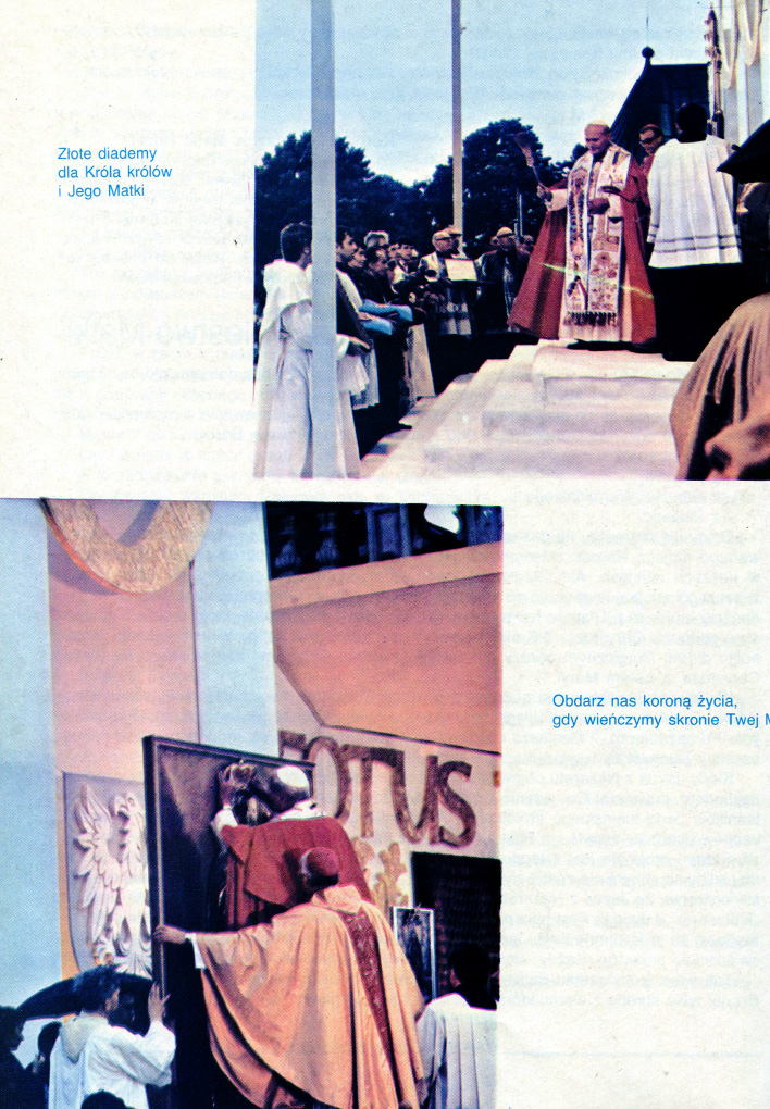 [s. 308, fot. 1, u góry] Złote diademy dla Króla królów i Jego Matki | [fot. 2, u dołu] Obdarz nas koroną życia, gdy wieńczymy skronie Twej Matki.