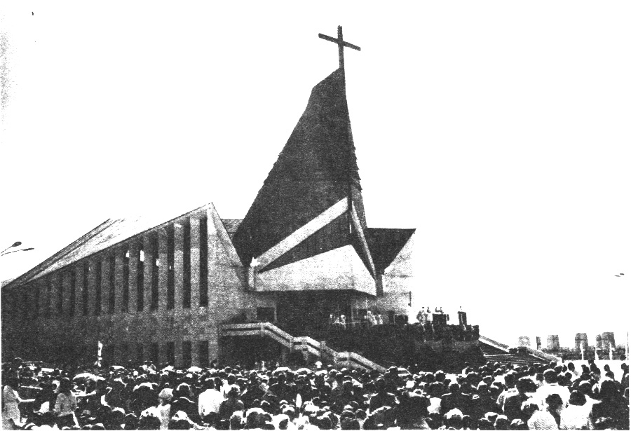 Pamiętam pierwsze początki tego trudnego, po ludzku ryzykownego dzieła, które łączyły się z salką katechetyczną i do niej dołączonym zadaszeniem na ołtarz. Odprawiałem przy tym ołtarzu pierwszą mistrzejowicką "pasterkę" w 1971 roku. Do salki przychodziły dzieci i młodzież na katechizację, przy ołtarzu, pod gołym niebem, gromadzili się - przy bardzo różnej pogodzie - parafianie z coraz to bardziej rozbudowującego się Osiedla Mistrzejowice.
