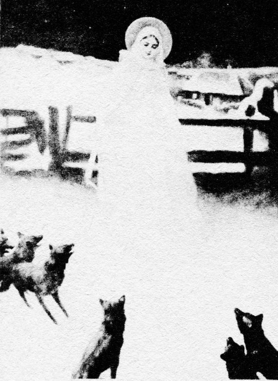 Gromnica, zgodnie z polską tradycją, strzeże dodatkowo przed wilkami. Wilki, symbole wielorakiego zła, porywacze dzieci i druhowie jeszcze groźniejszych wilkołaków, uciekały zawsze przed ogniem, a tym bardziej przed ogniem ze świętej gromnicy. To ludowe przekonanie przedstawił artysta malarz Piotr Stachiewicz: śnieżny krajobraz, Maryja idąca z zapaloną świecą i lękliwie nastroszona wilcza wataha. Obraz ten sprzedawany w oleodruku na odpustach stał się najbardziej znanym wizerunkiem [39]Gromnicznej w wielu polskich domach.