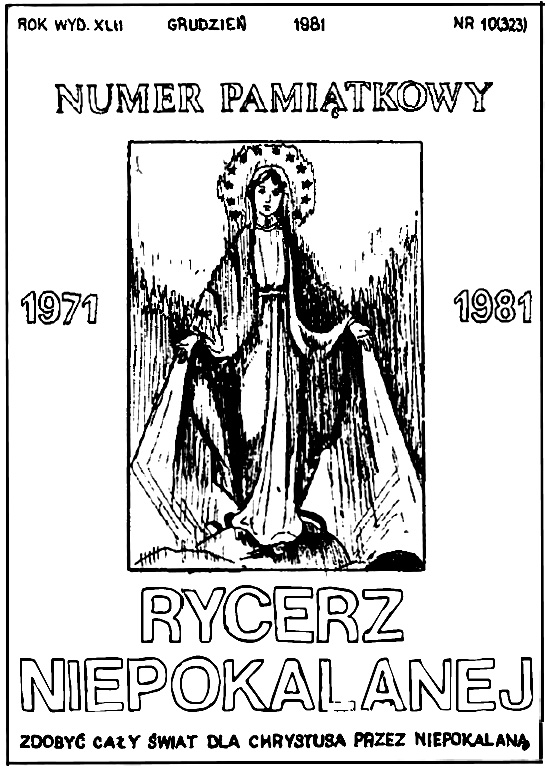 Najmilszym moim wspomnieniem z tej uroczystości jest publiczne okazanie uczuć przez o. prowincjała wobec "Rycerza Niepokalanej", wydrukowanego w Niepokalanowie. Podczas kazania trzymając w ręku numer "Rycerza" o. prowincjał powiedział: "Otrzymujemy radosną wieść: oto ponownie wychodzi w Polsce «Rycerz Niepokalanej»! W dziesięć lat po wyniesieniu na ołtarze bł. Maksymiliana Kolbego, w dziesięć lat po wznowieniu Wydawnictwa «Rycerza Niepokalanej» dla emigracji. polskiej w Rzymie, a następnie w Santa Severa - w ojczyźnie ukazuje się jak za dawoych czasów od roku 1952 nie wychodzący więzień «Rycerz Niepokalanej». To podarunek bł. Maksymiliana w czterdziestą rocznicę jego aresztowania i śmierci głodowej, w dziesiątą rocznicę wyniesienia go na ołtarze. Z czcią wielką całuję ten dar naszego błogosławionego Współbrata".