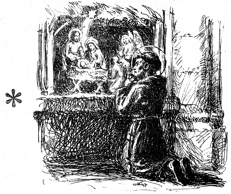 "Pewnego razu - opowiada żywotopisarz franciszkański - br. Marico zapytał św. Franciszka, czy w Boże Narodzenie, jeśli wypadnie ono w piątek, można jeść pokarmy mięsne. Święty odpowiedział: «Mogą, bracie, mogą jeść nie tylko ludzie, ale nawet kamienie, a ponieważ nie mają czym jeść, niech przynajmniej będą tłuszczem natarte». Chciał Święty, aby w tym dniu bogaci ofiarowali ucztę ubogim, [10]aby cesarze wydali rozkaz rozrzucenia ziarna na drogi ku radości ptasząt i by woły i osły miały w żłobach szczodrze paszy na pamiątkę stajni betlejemskiej".